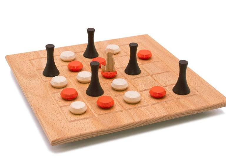 In Surikata, the aim is to place your own pieces strategically in order to block the spaces your opponent needs.